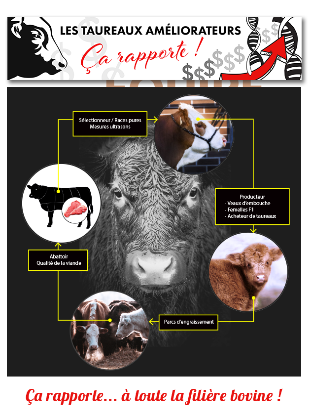faible et donc une production déficitaire du côté des éleveurs de race pure. Il n’y a donc pas suffisamment de taureaux purs produits pour